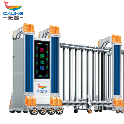 CJ-SSM025智能不锈钢伸缩门学校小区工厂电动大门推拉门商业办公大门酒店家具电动门