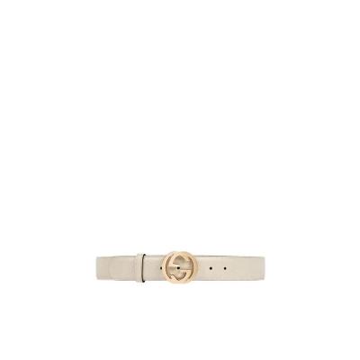 古驰(GUCCI)真皮徽标印花腰带金色搭扣可调节女款时尚百搭配饰