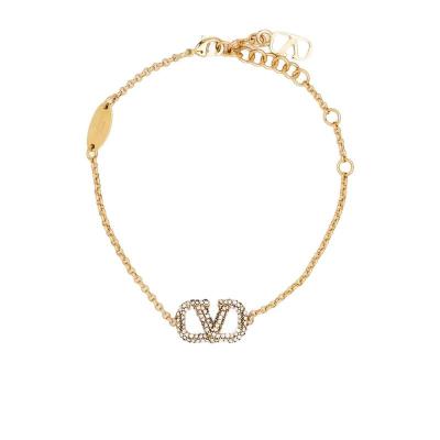 华伦天奴(Valentino)女士时尚金属链条镶钻手链精美大气百搭配饰