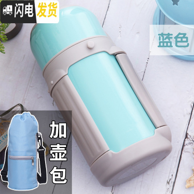 三维工匠1000保温杯便携小巧大容量女士时尚可爱婴儿外出保温壶户外 蓝色+壶包
