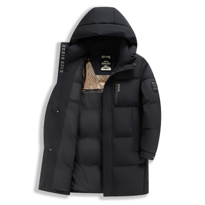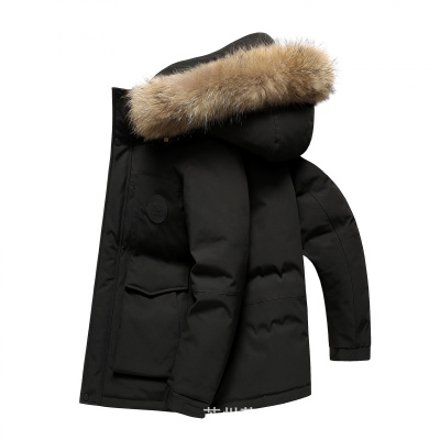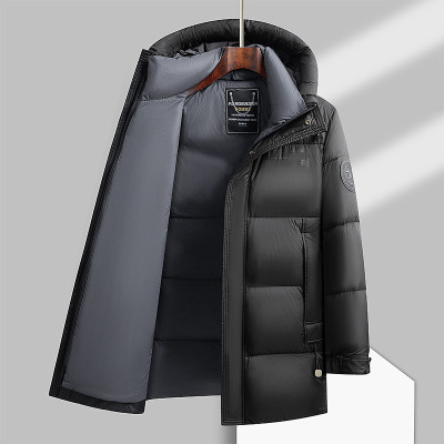 冬季新款加厚中长羽绒服男士白鸭绒防寒休闲连帽羽绒服男