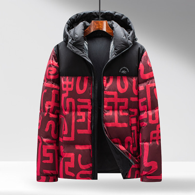 撞色迷彩潮流羽绒服秋冬90白鸭绒新国标羽绒服男士加厚连帽羽绒服