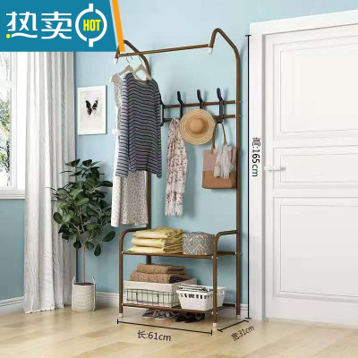 敬平衣架落地家用挂衣架卧室内衣帽架简易晾衣架衣服架子多功能置物架 升级款(古铜色)