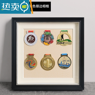 敬平奖牌收纳盒壁挂式奖章展示框立体相框纪念章收纳装裱画框挂牌定制 黑色银边-[30*30cm]放6枚 奖牌框
