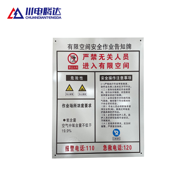 川电腾达 TD-TS103 有限空间标识牌 铝合金 600*800 (计价单位:个)