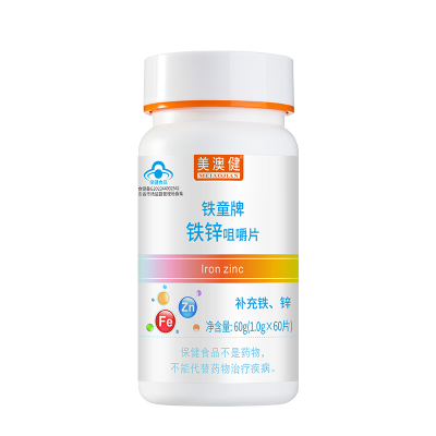 送赠品]美澳健铁童牌铁锌咀嚼片60片正品青少年学生儿童宝宝小孩子成长补铁元素片补锌片碳酸钙葡萄糖酸锌葡萄糖酸亚铁片