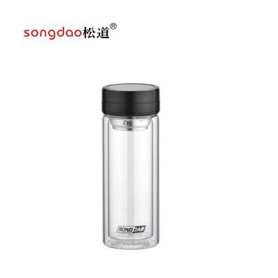 松道 玻璃杯 双层玻璃杯双层玻璃水杯带盖耐高温茶水分离便携旅行杯泡茶杯SD200-300ML