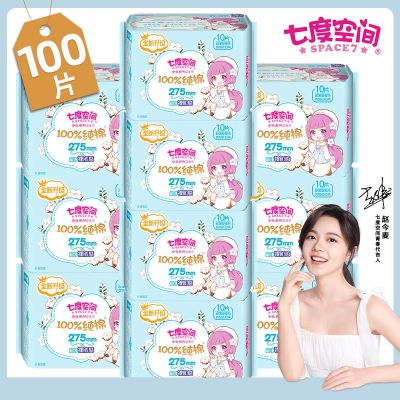 七度空间卫生巾夜用275组合装纯棉超薄款透气学生姨妈巾