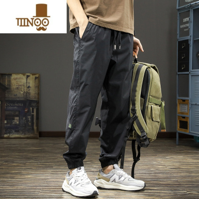 YANXU夏季秋季冰丝休闲裤男宽松大码束脚哈伦裤美式潮牌机能风工装长裤