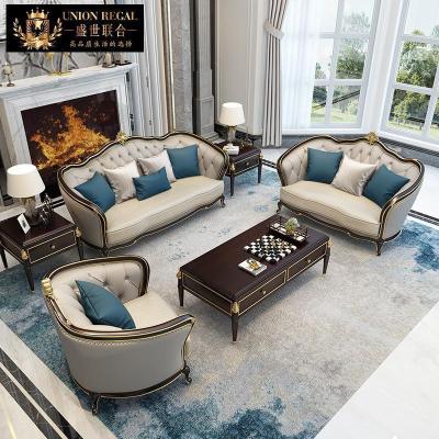森美人欧式沙发实木简约大户型客厅皮艺沙发组合美式沙发