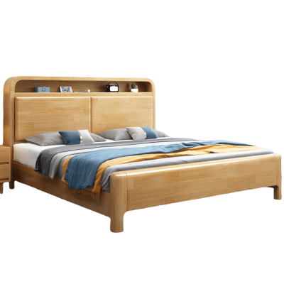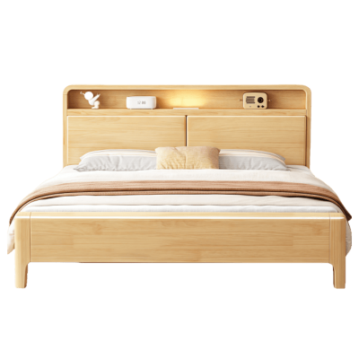鑫木樽床1.5m原木色+床头柜+床垫套