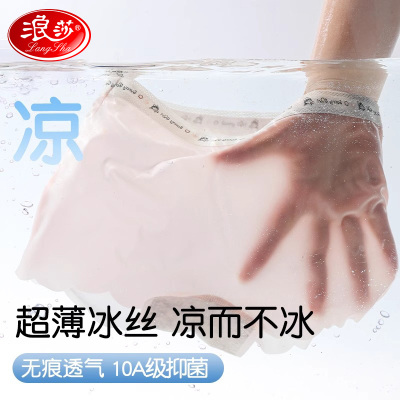 浪莎男士冰丝内裤男夏季薄款透气平角裤AAA级无痕凉感四角短裤头