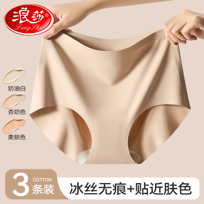 浪莎无痕内裤女士7A抗菌裆不夹臀2025新款少女生中腰冰丝三角裤