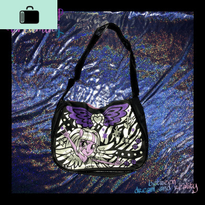 暗黑小魔女 蹦迪紫嘻哈土酷精灵少女单肩手提包腋下包法棍包NEW LAKE 暗黑小魔女改良版女士单肩包