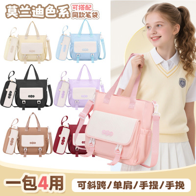 兴趣班小学初高中生手提斜挎包百搭大容量补课撞色上课可双肩背