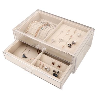 美帮汇首饰收纳盒亚克力透明绒布欧式小公主放装耳环耳饰大容量