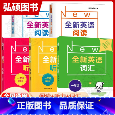 [听力+阅读+词汇]基础+提高(5册) 小学一年级 [正版]全新英语听力阅读一年级上下册基础增强版小学1年级第一二学期同