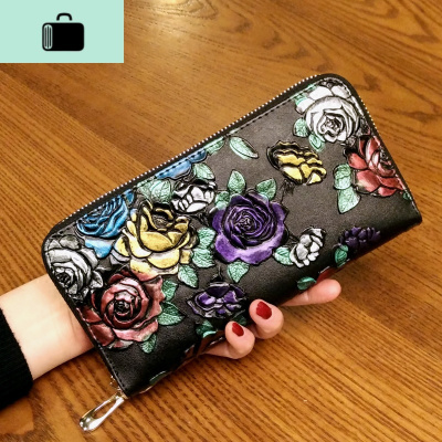 皮钱包女长款头层牛皮横款钱包多卡位复古压花钱夹中国风手拿包NEW LAKE