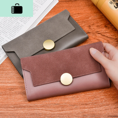 钱包女长款薄学生简约韩版2020新款复古磨砂软皮搭扣两折钱夹NEW LAKE