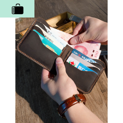皮匠儿手作 疯马皮手工牛皮钱包男手缝DIY材料复古短款钱夹NEW LAKE