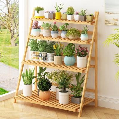 森美人折叠花架子楠竹子挂式多层实木质阳台置物多肉室内花盆架家用