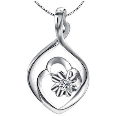梦克拉 18K金钻石吊坠女 单钻吊坠 简约 花瓣 k金钻石挂坠 女款项坠 爱你不变