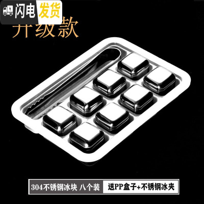 三维工匠不锈钢威士忌冰块冰球冰粒冰格红酒杯冰袋冰桶冰夹洋酒冰块礼盒装 不锈钢[8个装冰块]送冰夹