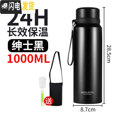 三维工匠保温杯男女士大容量304不锈钢水杯定制刻字户外便携茶杯杯子 绅士黑1000