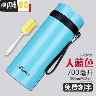 三维工匠保温杯男士大容量便携女户外学生304不锈钢水杯茶杯杯子 浅蓝色700