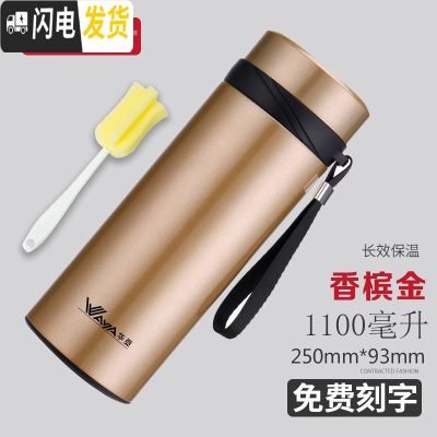 三维工匠保温杯男士大容量便携女户外学生304不锈钢水杯茶杯杯子 香槟金1100