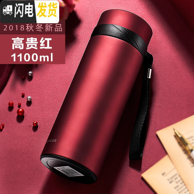 三维工匠保温杯男士大容量1000 女不锈钢水杯便携户外家用茶杯杯子 1100高贵红