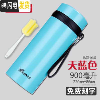 三维工匠保温杯男士大容量便携女户外学生304不锈钢水杯茶杯杯子 浅蓝色900