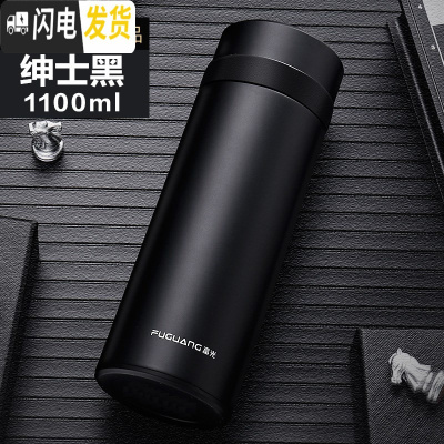 三维工匠保温杯男士大容量1000 女不锈钢水杯便携户外家用茶杯杯子 1100绅士黑