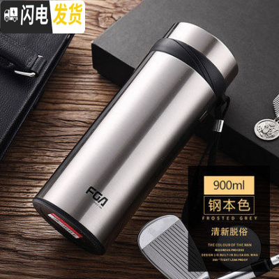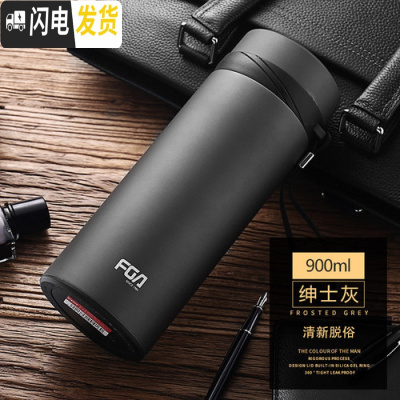 三维工匠保温杯男士大容量1000 女不锈钢水杯便携户外家用茶杯杯子 900磨砂灰