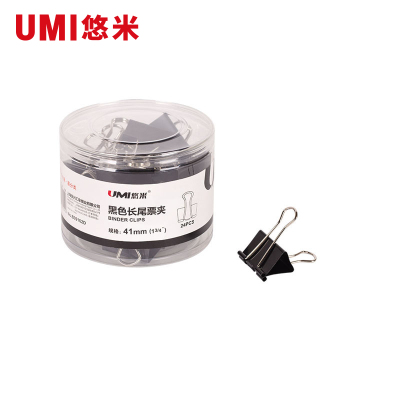 悠米 2# (41mm)黑色长尾票夹(筒装) B09102D 黑