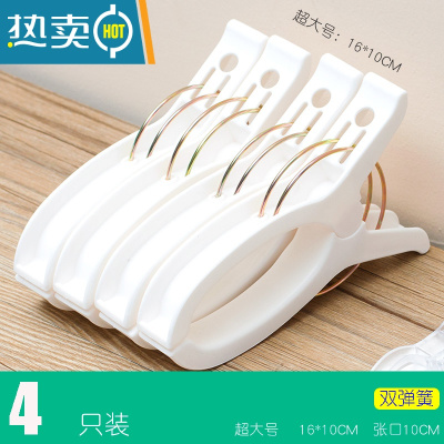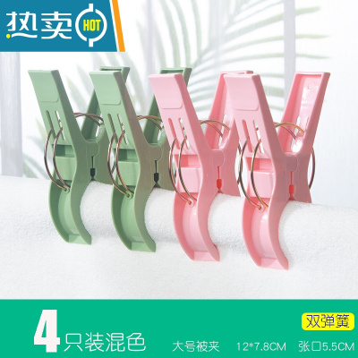 敬平衣服夹子晾衣夹防风固定毛巾家用晒被子大夹子蚊帐塑料夹子晾衣架 [晒被夹][超大号4只装][双弹簧]16*1