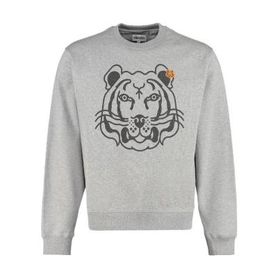 高田贤三(Kenzo)灰色虎头印花修身长袖棉氨纶运动卫衣男