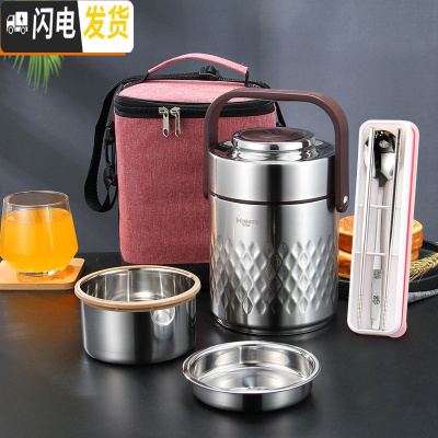 三维工匠304不锈钢保温饭盒桶上班族1人便携12小时超长大容量多层真空 1.6真空提锅+保温背袋+304勺筷盒餐具套装