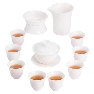 佳德美羊脂玉瓷圆禧三才盖碗瓷化陶瓷中国白套组180ML