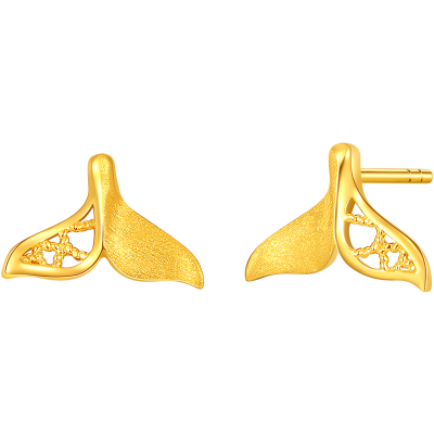 新金珠宝 999足金美人鱼尾耳钉女 5G黄金人鱼尾耳饰1042