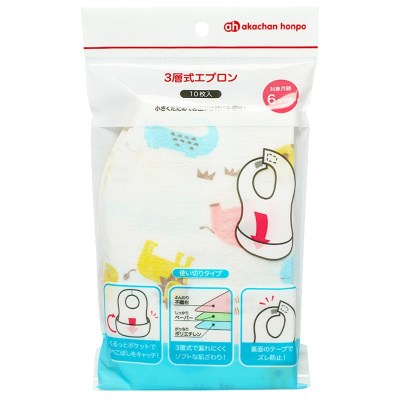 akachan honpo阿卡佳本铺 便携式3层宝宝围兜口水巾 可爱动物10件/袋