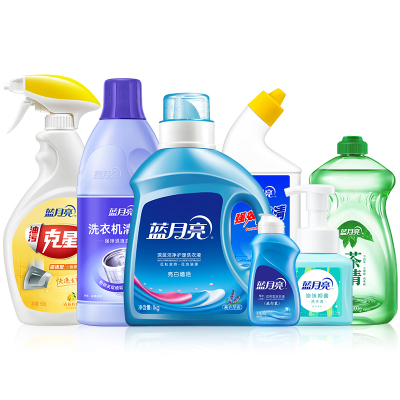 蓝月亮家清套装(薰衣草亮白+洗洁精+洗手液+洗衣机清洁剂+厕清+油污克星+白兰专用)3.435kg/套