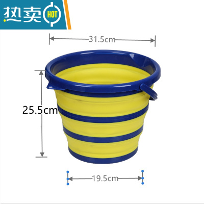 敬平洗车美术大号车载可收缩便携式户外汽车用10L塑料钓鱼桶 圆形黄蓝色中号有提手 10L水桶