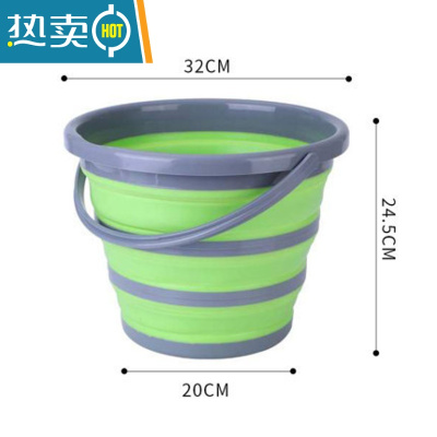 敬平洗车美术大号车载可收缩便携式户外汽车用10L塑料钓鱼桶 圆形绿色中号带盖子有提手 10L水桶