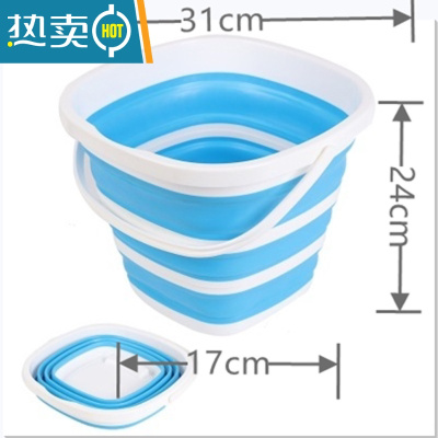敬平洗车美术大号车载可收缩便携式户外汽车用10L塑料钓鱼桶 方形天蓝色中号有提手 10L水桶