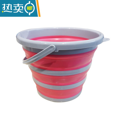 敬平洗车美术大号车载可收缩便携式户外汽车用10L塑料钓鱼桶 圆形玫红色中号视频同款有提手 10L水桶