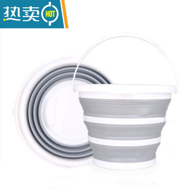 敬平洗车美术大号车载可收缩便携式户外汽车用10L塑料钓鱼桶 圆形灰白色中号视频同款有提手 10L水桶