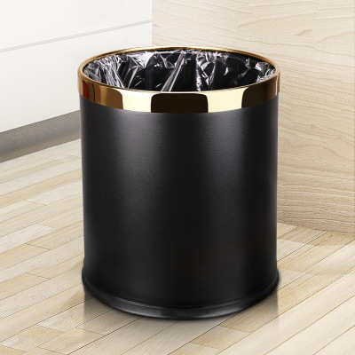 家用创意双层垃圾桶客厅高档办公室北欧厨房卧室厕所卫生间 黑色-金圈10L