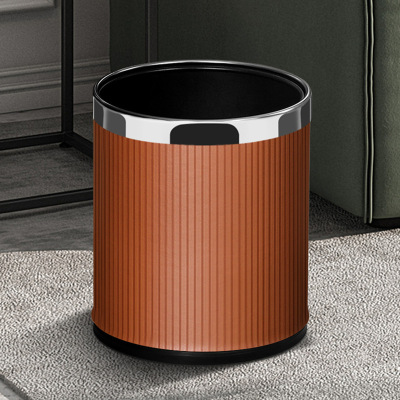 定制垃圾桶酒店客厅高档办公室厨房双层垃圾筒商用 10L棕色条纹-金圈