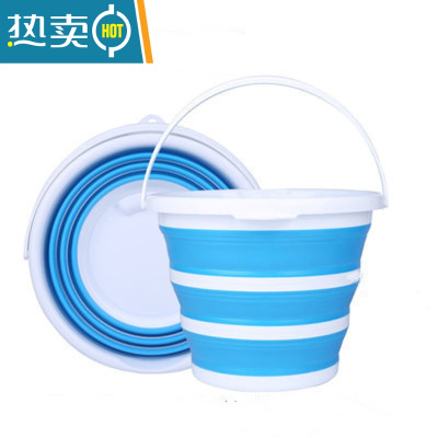 敬平车用后备箱折叠洗车水桶便携式车载旅行钓鱼多功能专用伸缩桶大号 [升级加厚带盖]蓝色硅胶大号 10L[送收纳挂钩*2]